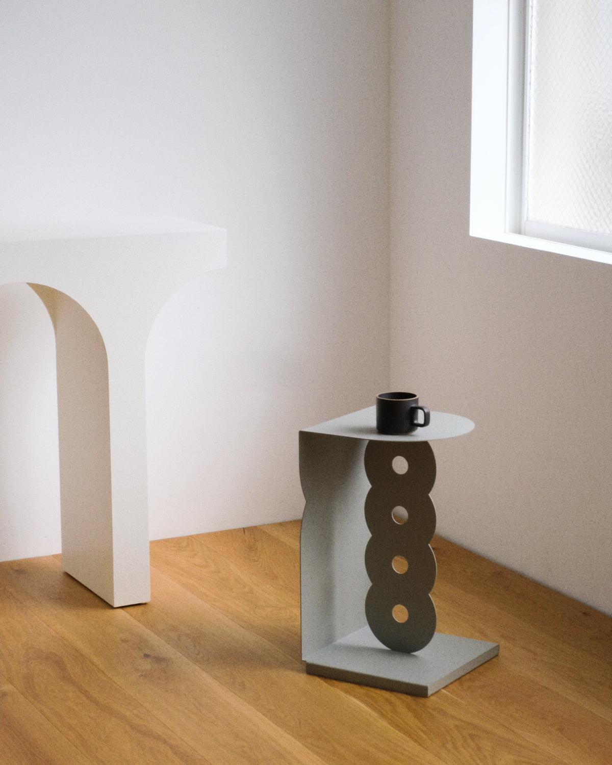 直線と曲線のバランスが美しい、スチール製のサイドテーブル