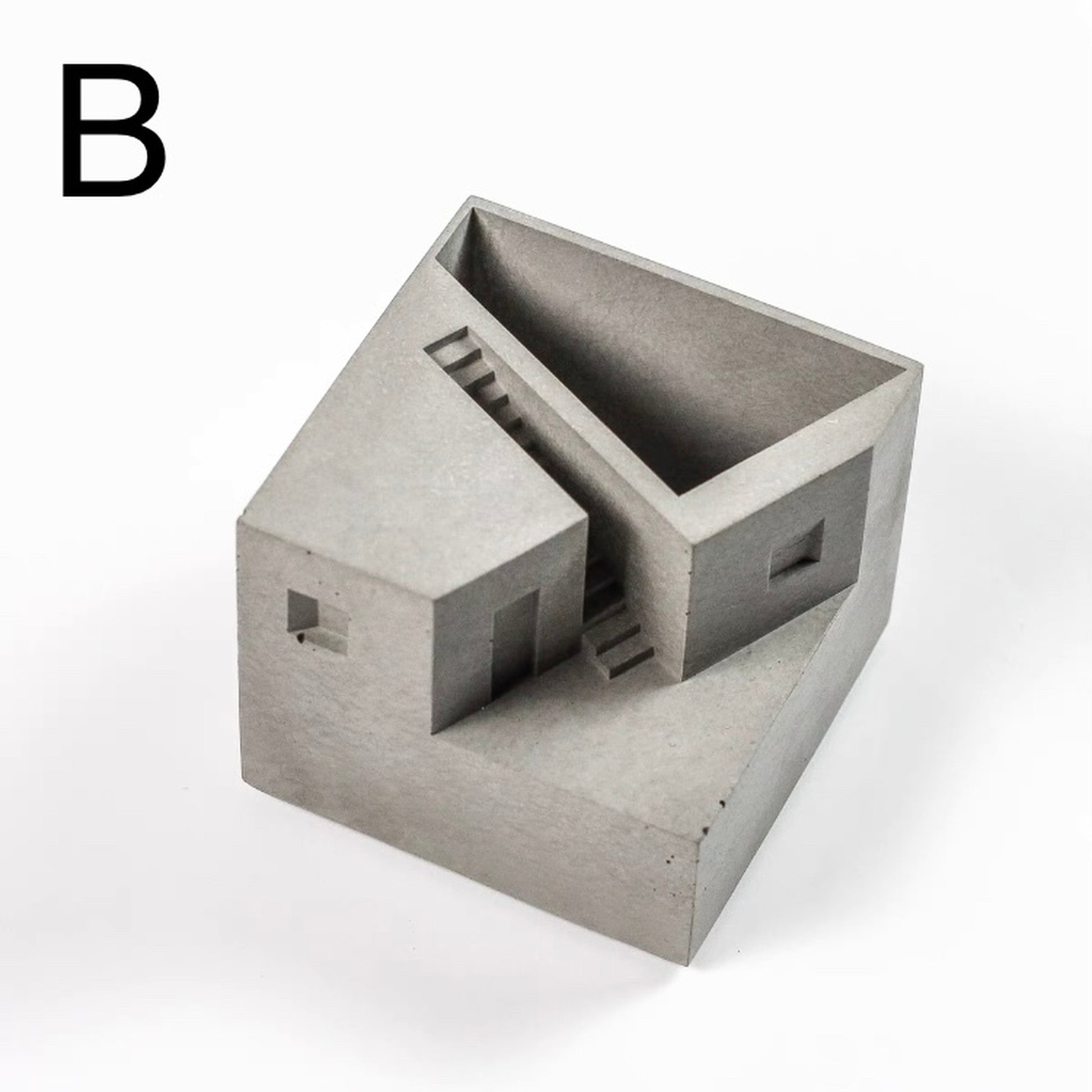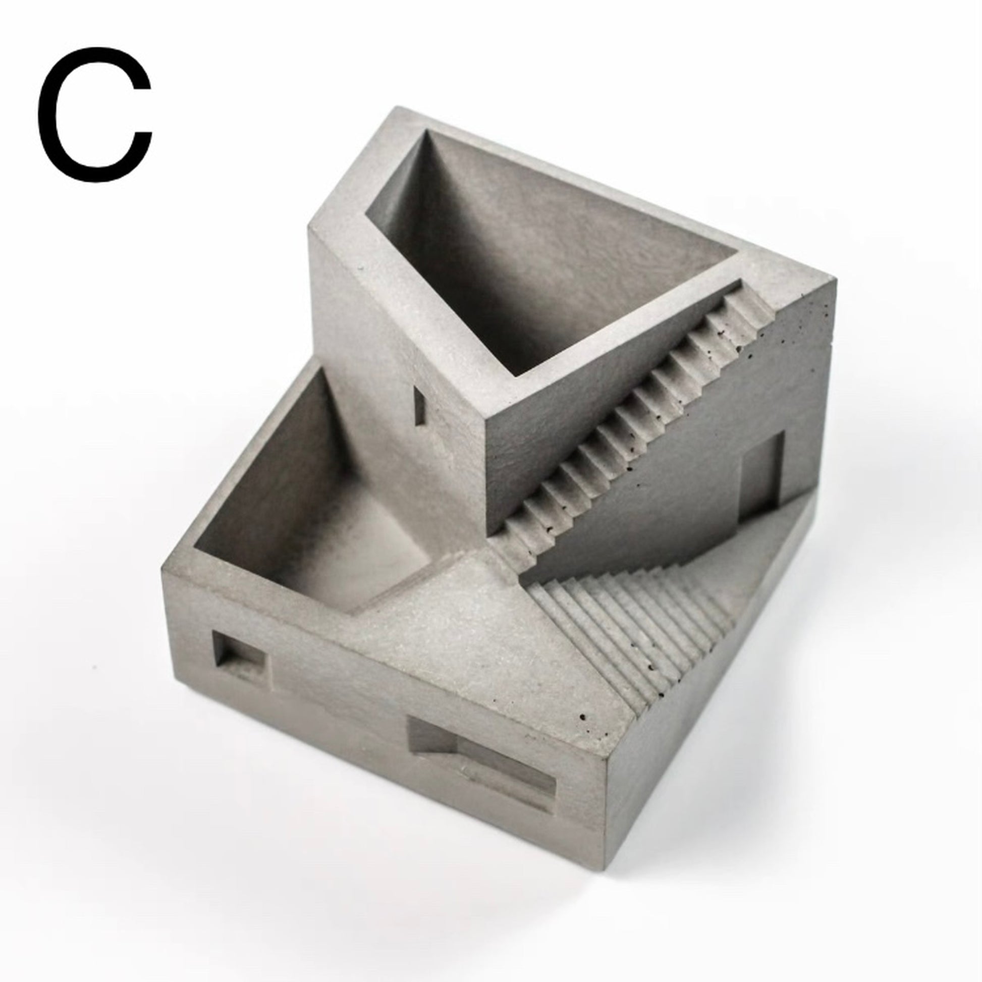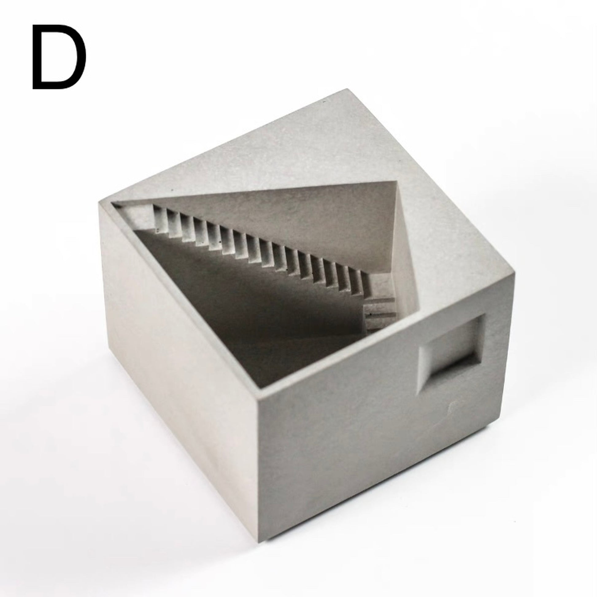 セメント素材の無機質なテクスチャがデスクトップのインテリアに馴染み