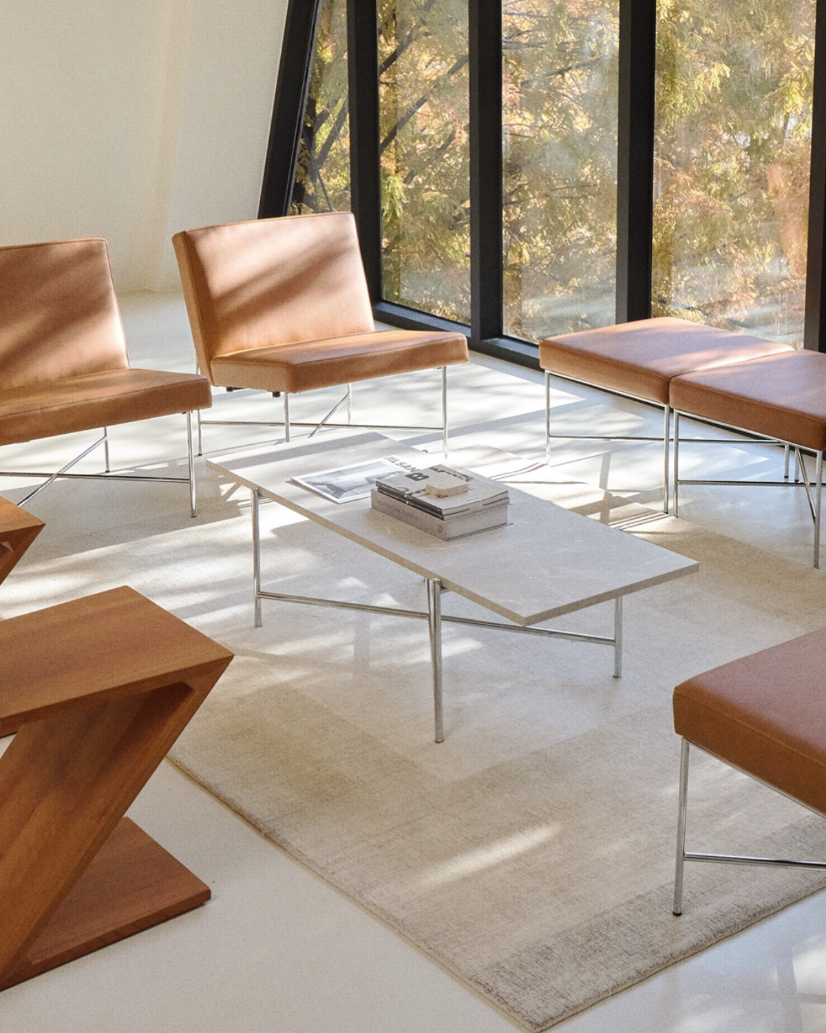 X字型のシンプルな構造から生まれたデザインで、空間にモダンでミニマルな雰囲気を添えます。
