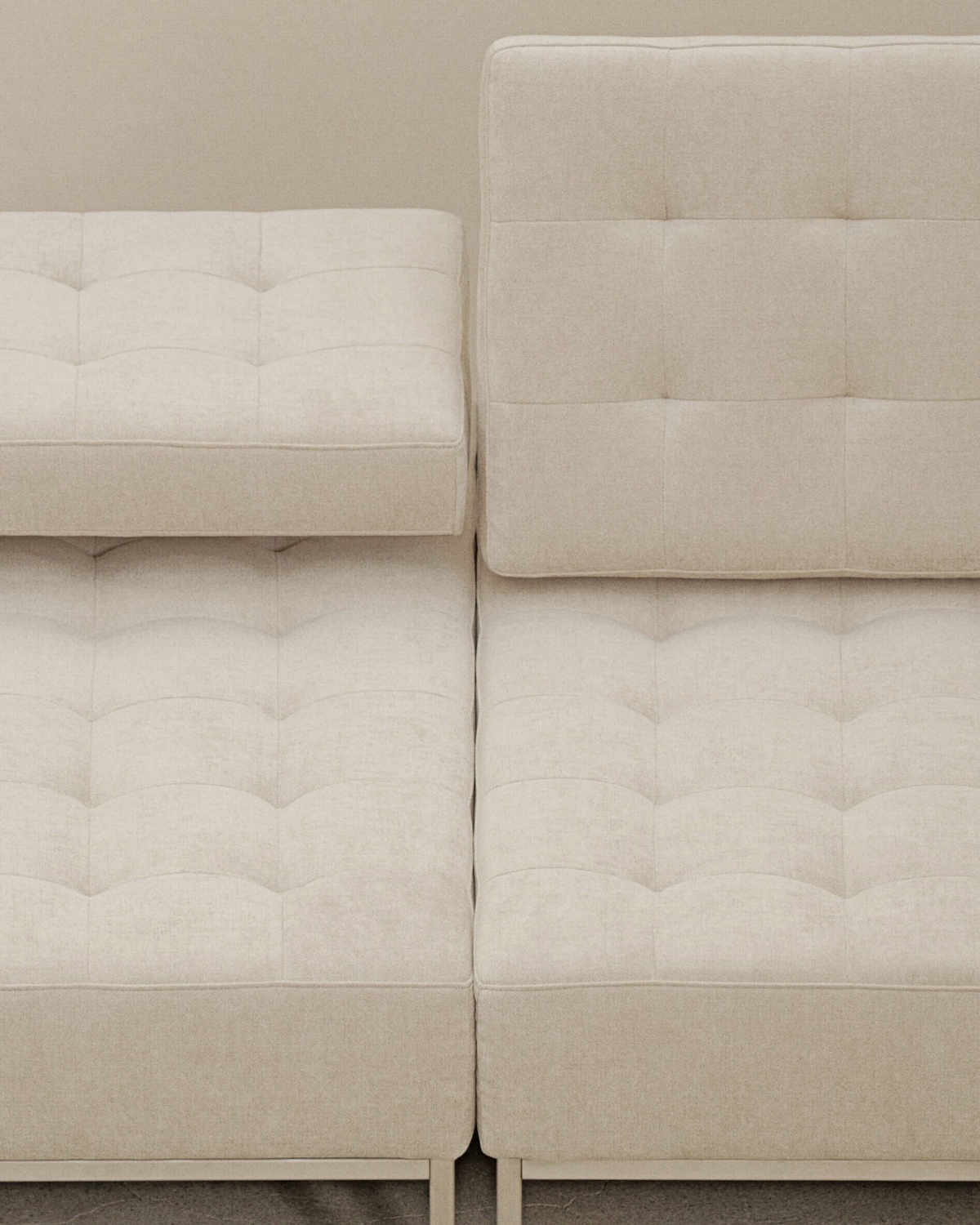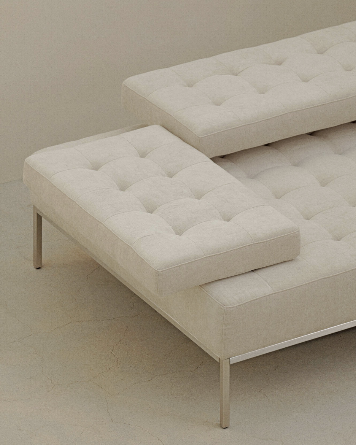 ミニマリズムを基調に、繊細で密度の高いキルティングディテールを施したソファ