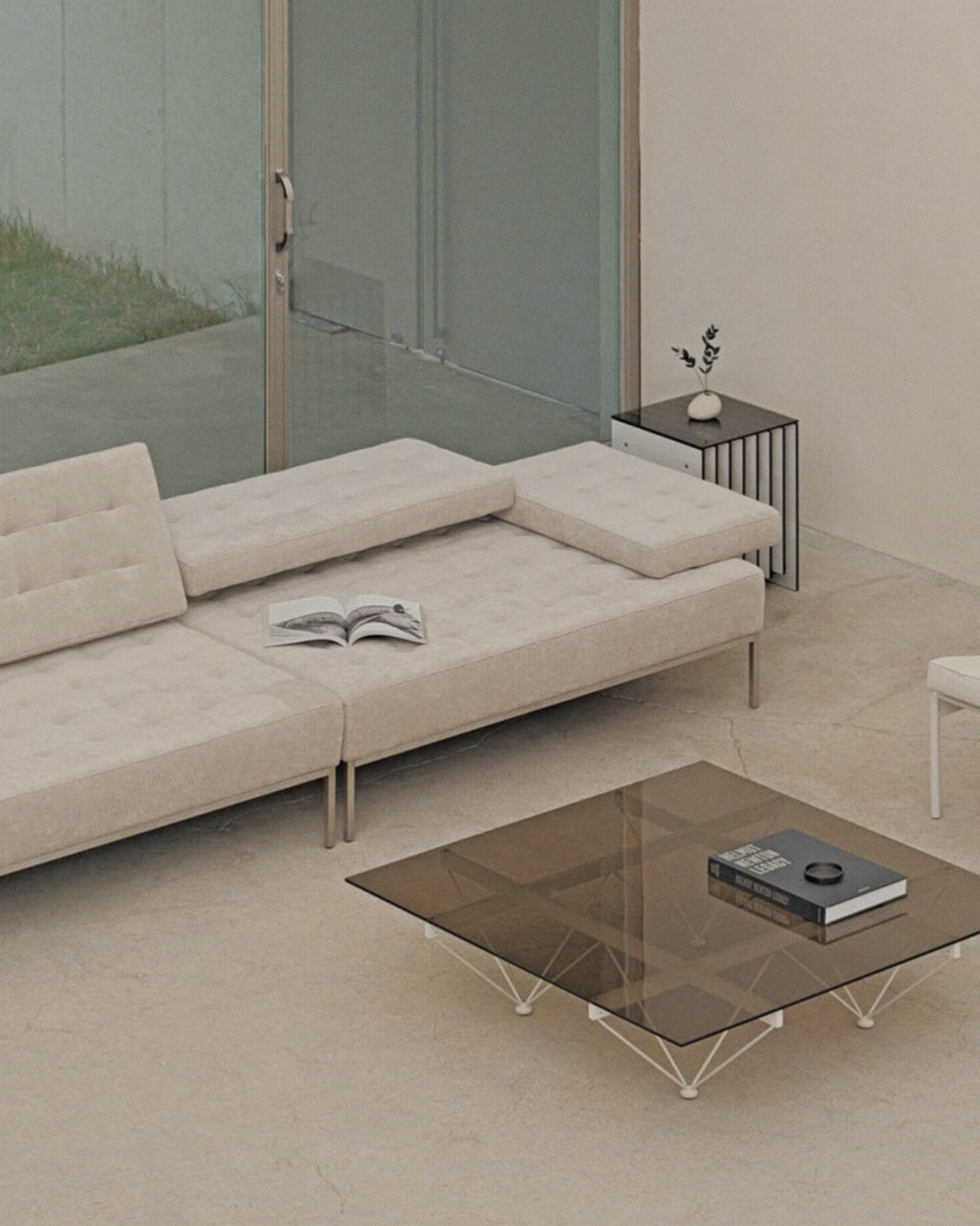 Homme Sofaは、構造を極限までシンプルに削ぎ落としながらも、