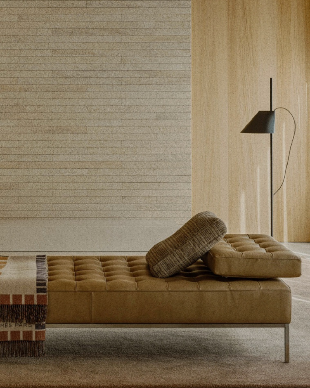 ミニマリズムを基調に、繊細で密度の高いキルティングディテールを施したソファ