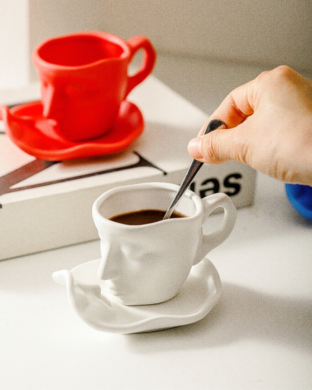 キスするように幸せな一瞬を彫刻的に落とし込んだ、マグソーサーセット