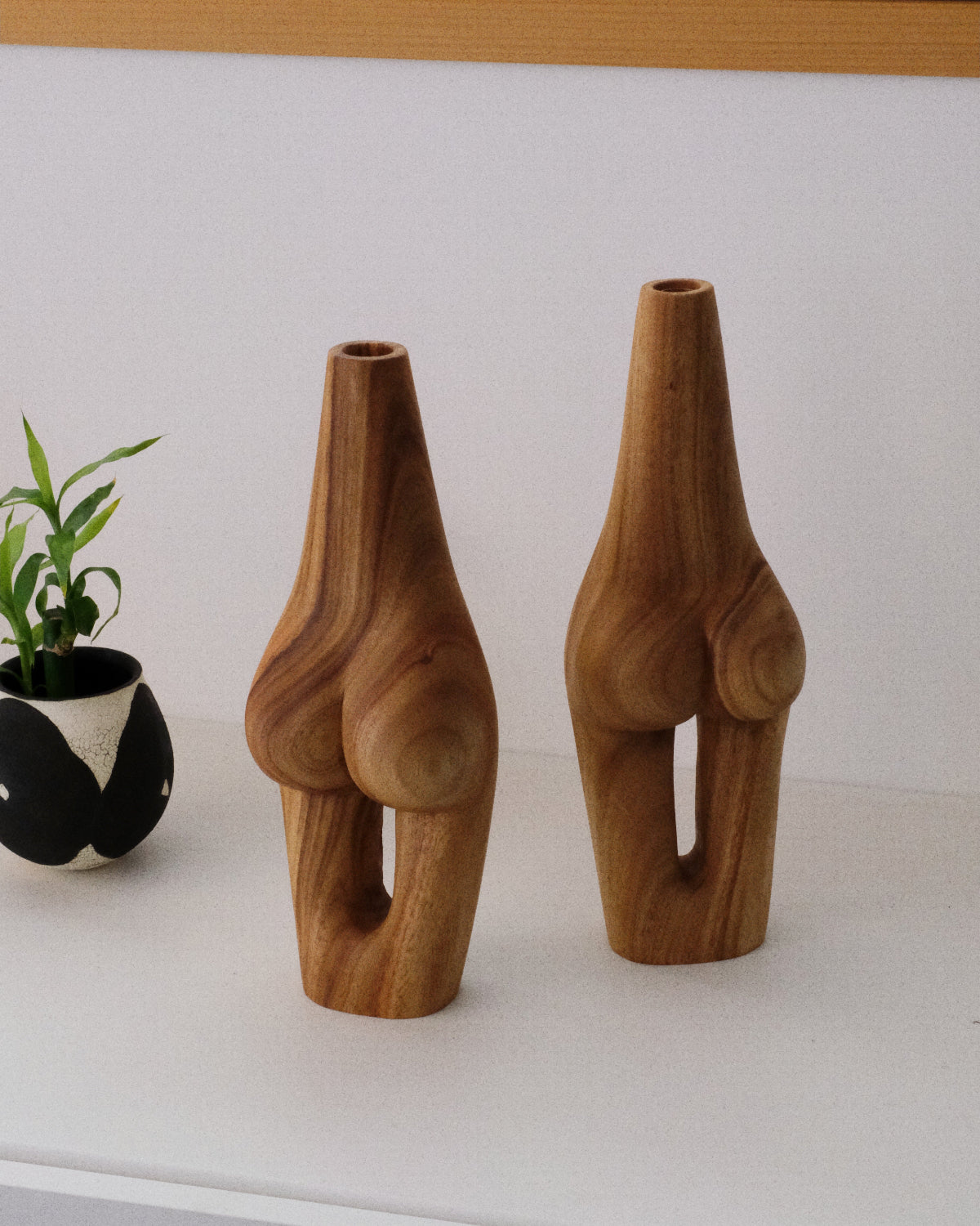 ユニークな響きを持つ一輪挿しは、福岡の木工作家nishimokkoさんの手によって生み出された、世界にひとつだけのアートピース。