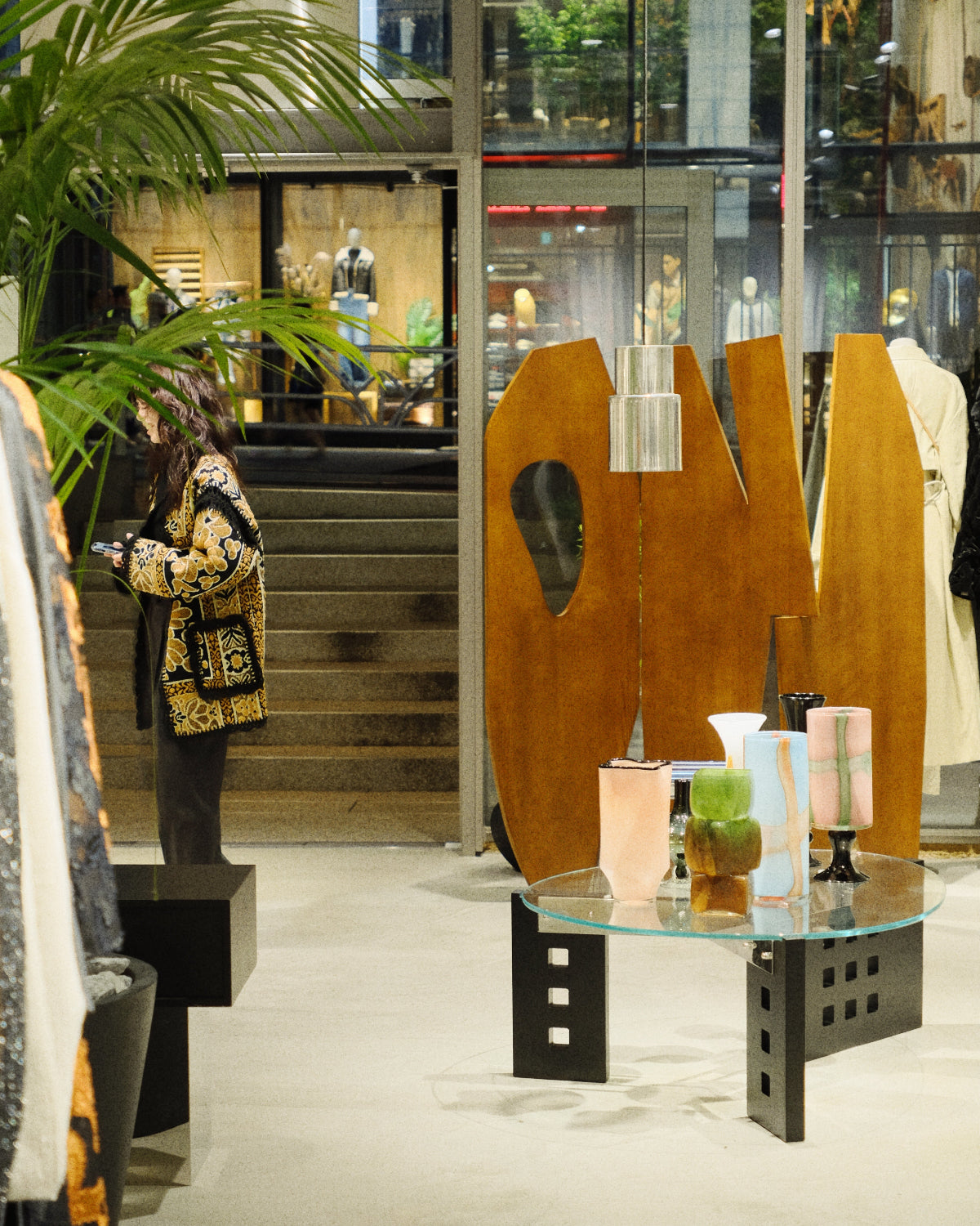 ショップでは、間仕切りとしてだけではなく、商品の背景として世界観を際立たせ