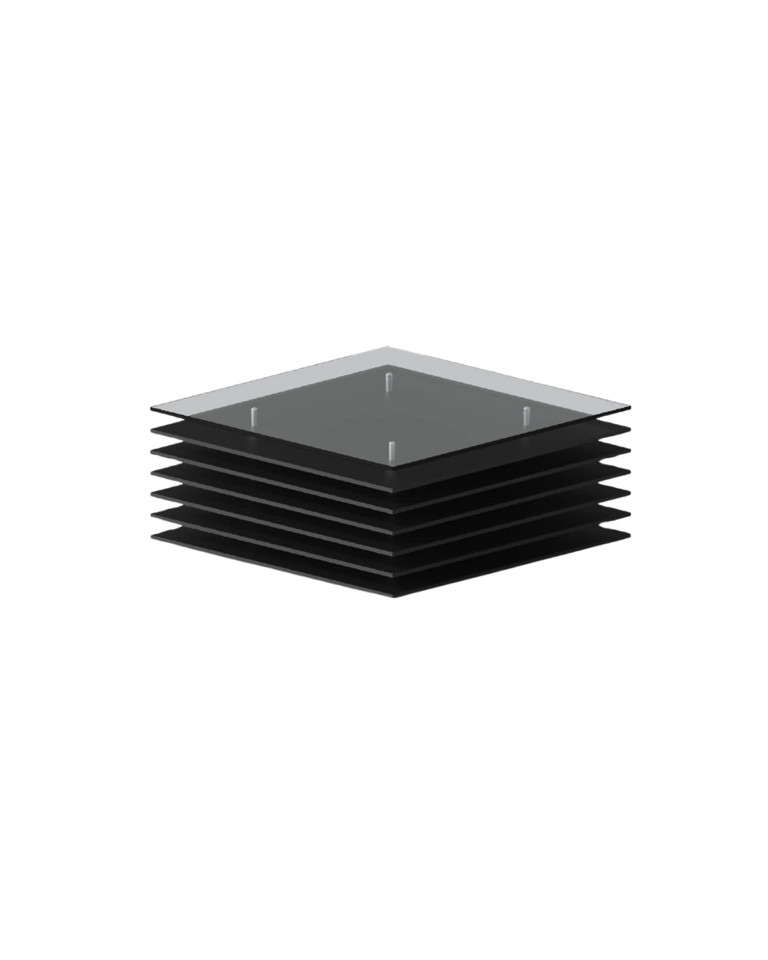 Piloti コレクションの天板は、光に照らされたときに写真のようにほのかな波模様が現れることがございます。これはホワイトよりはブラック色の天板で主に目立ち、製造過程で発生する素材固有の特性で製品の欠陥ではございません。