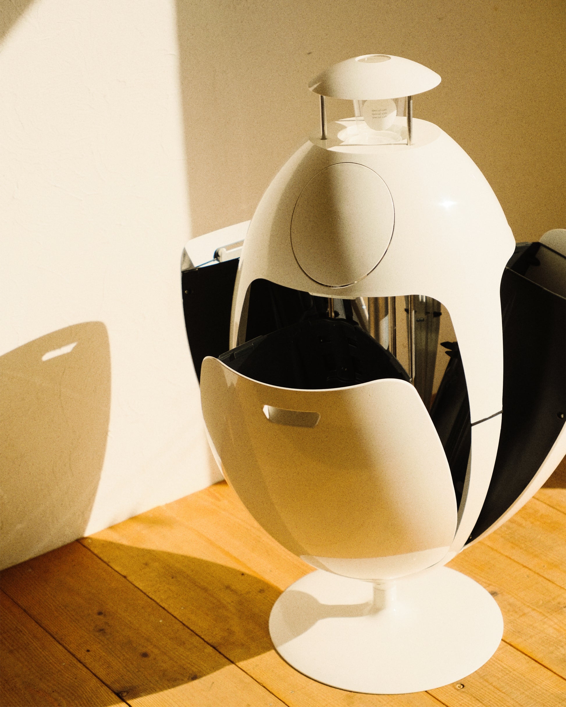 soldi designによる、恐竜の卵のようなデザインが特徴的な3WAYゴミ箱