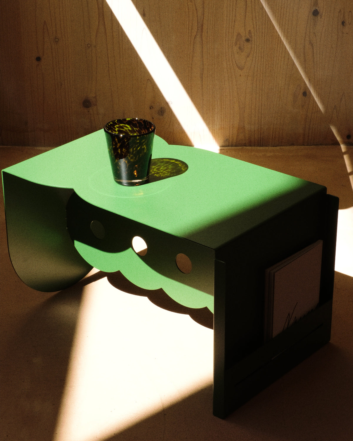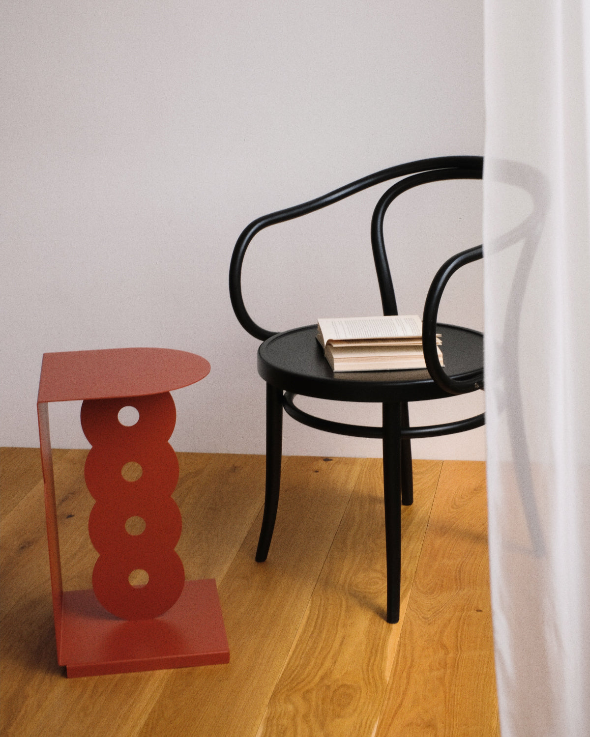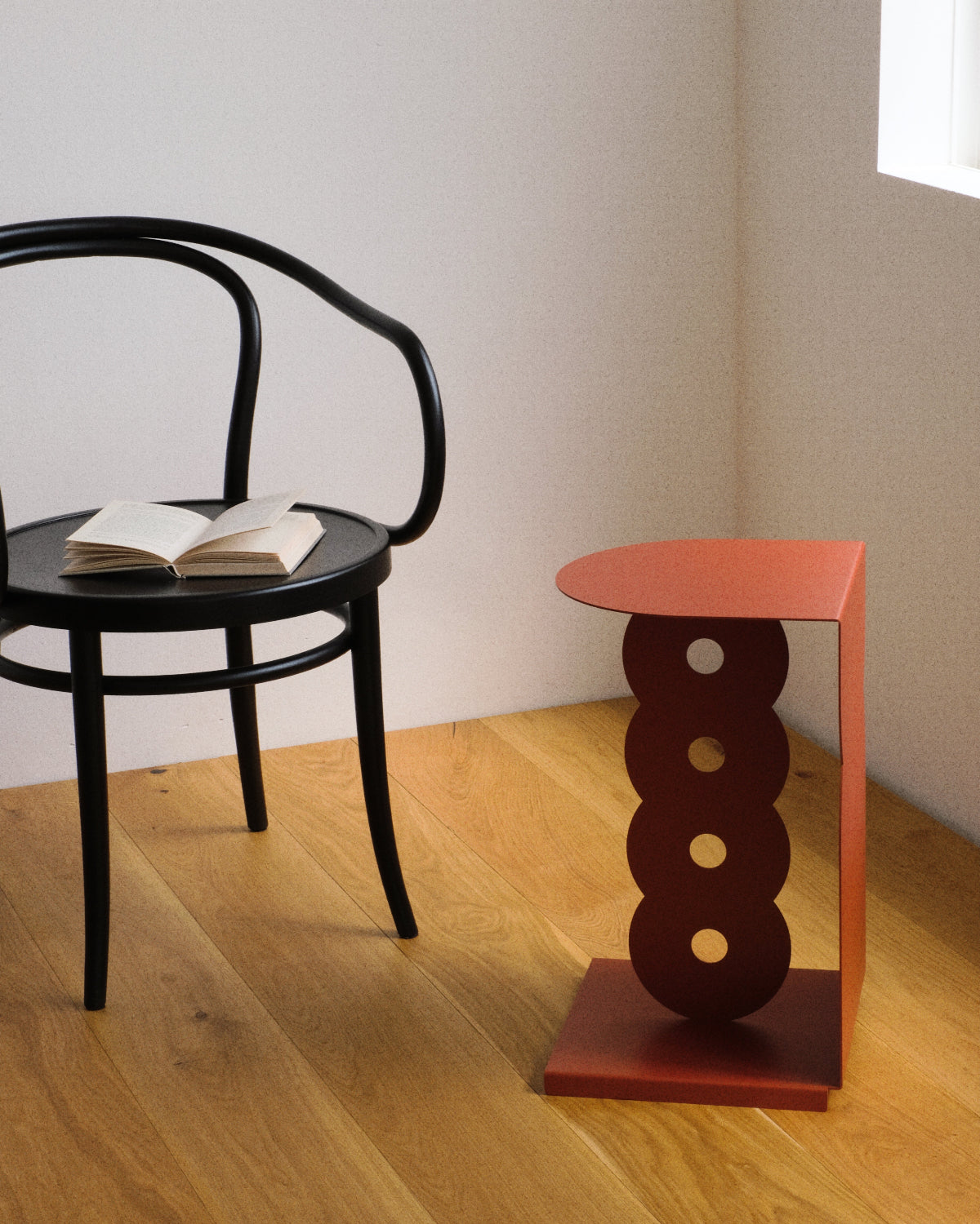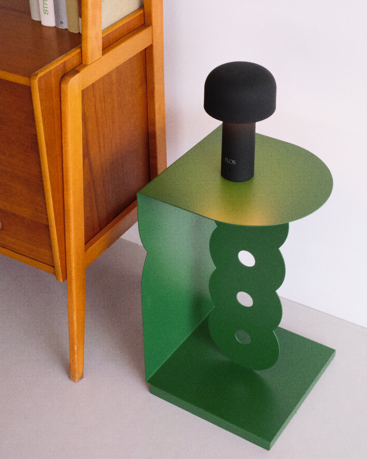 直線と曲線のバランスが美しい、スチール製のサイドテーブル