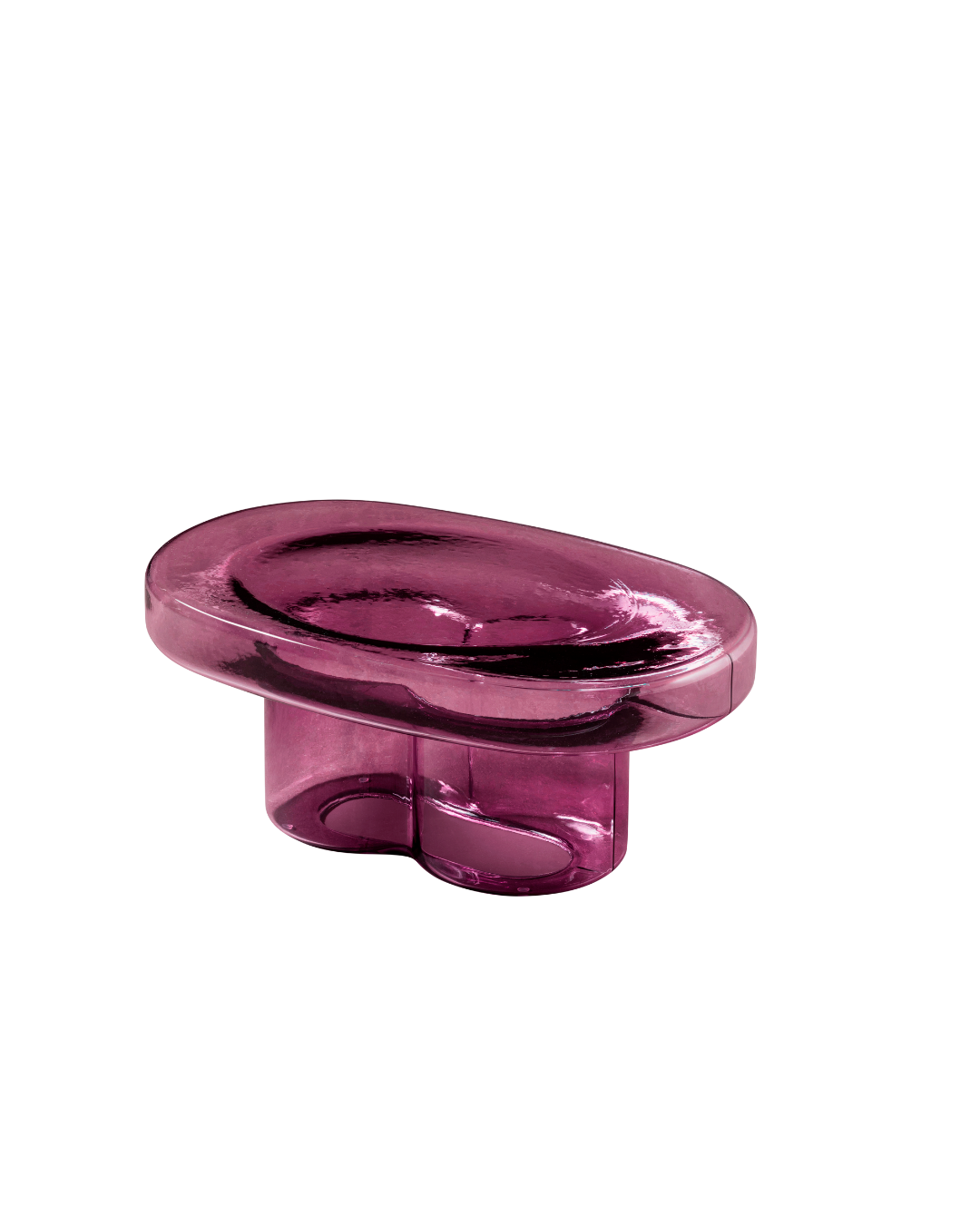 ひっくり返して吹き込まれた空気の一吹きから誕生したガラスのテーブル
