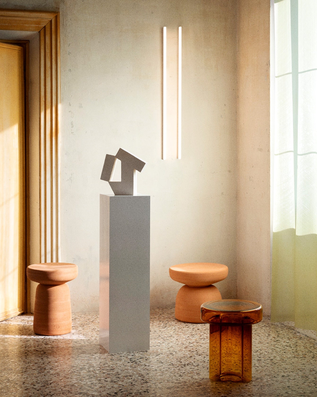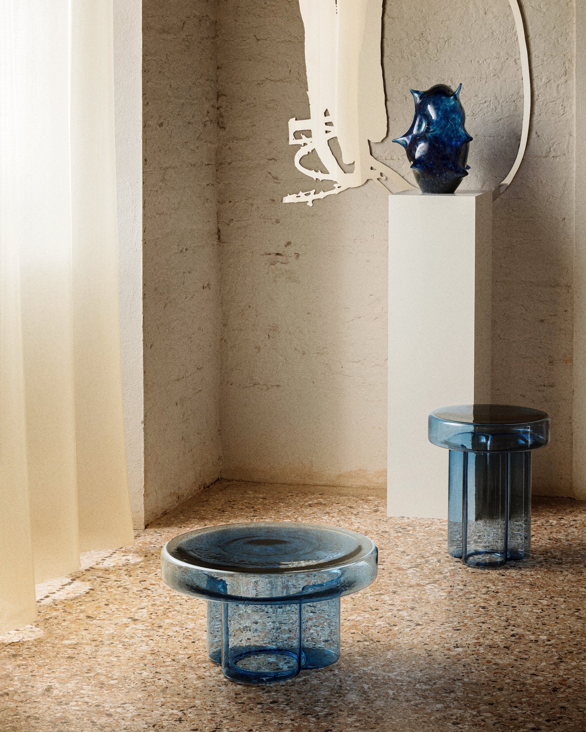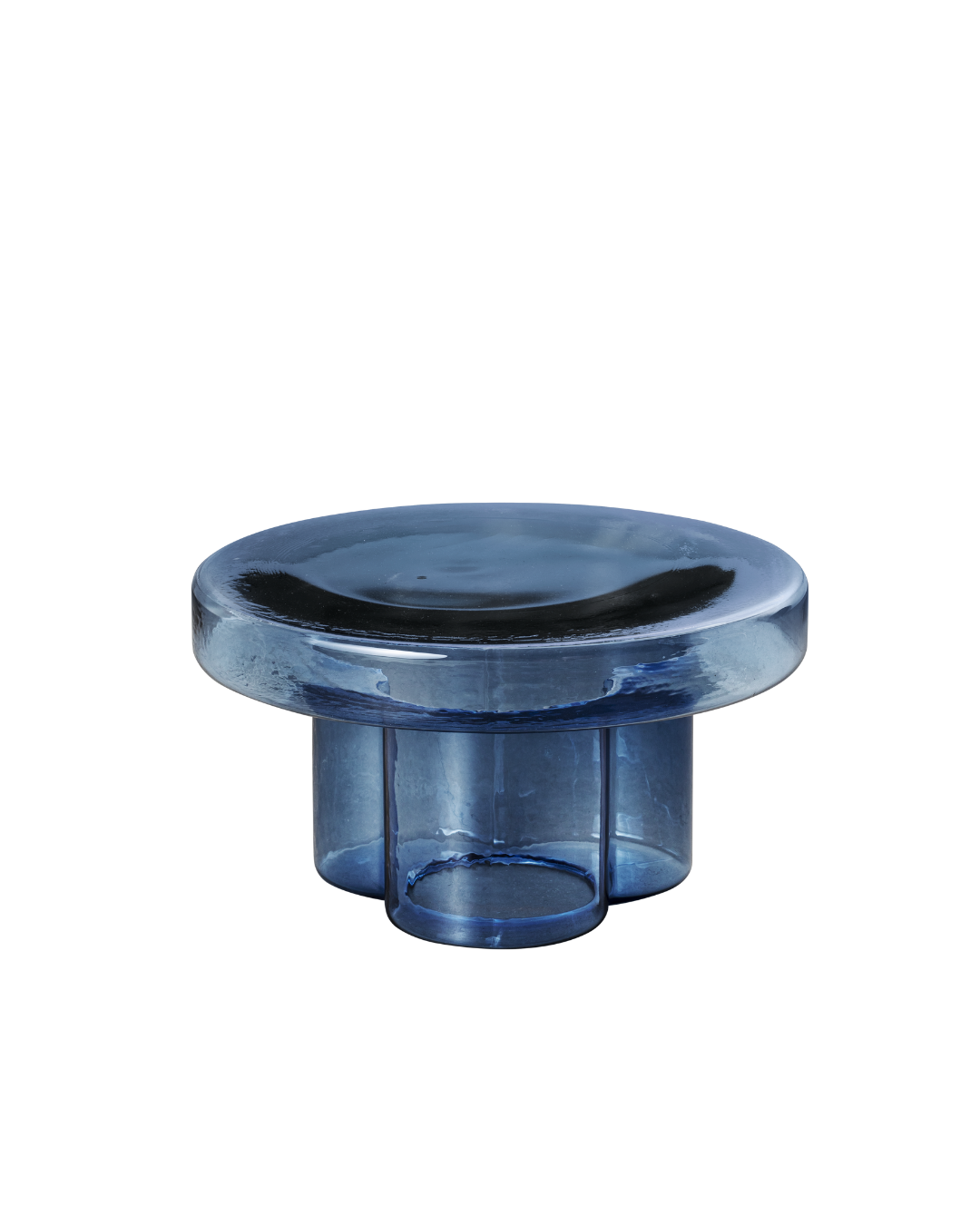 ひっくり返して吹き込まれた空気の一吹きから誕生したガラスのテーブル