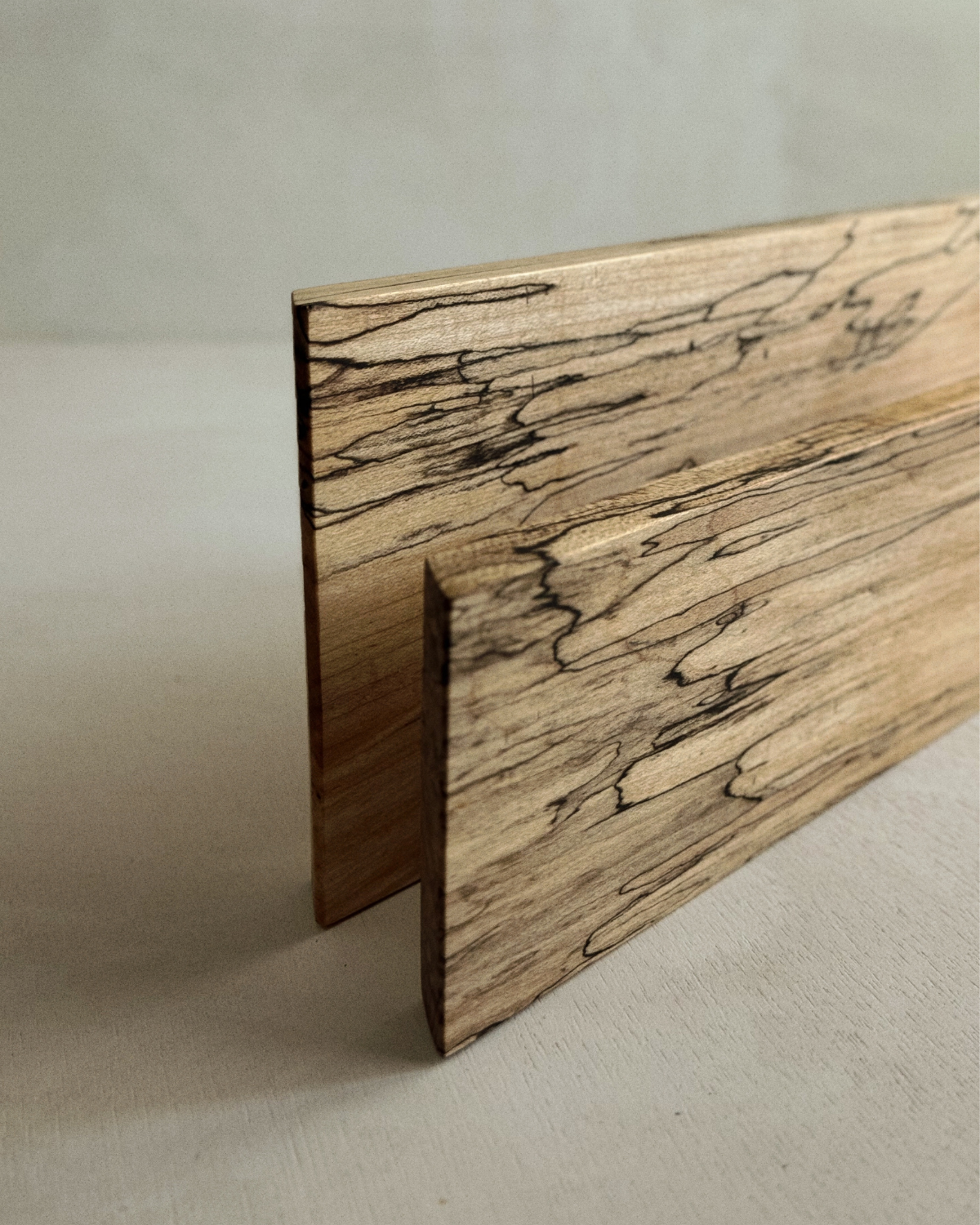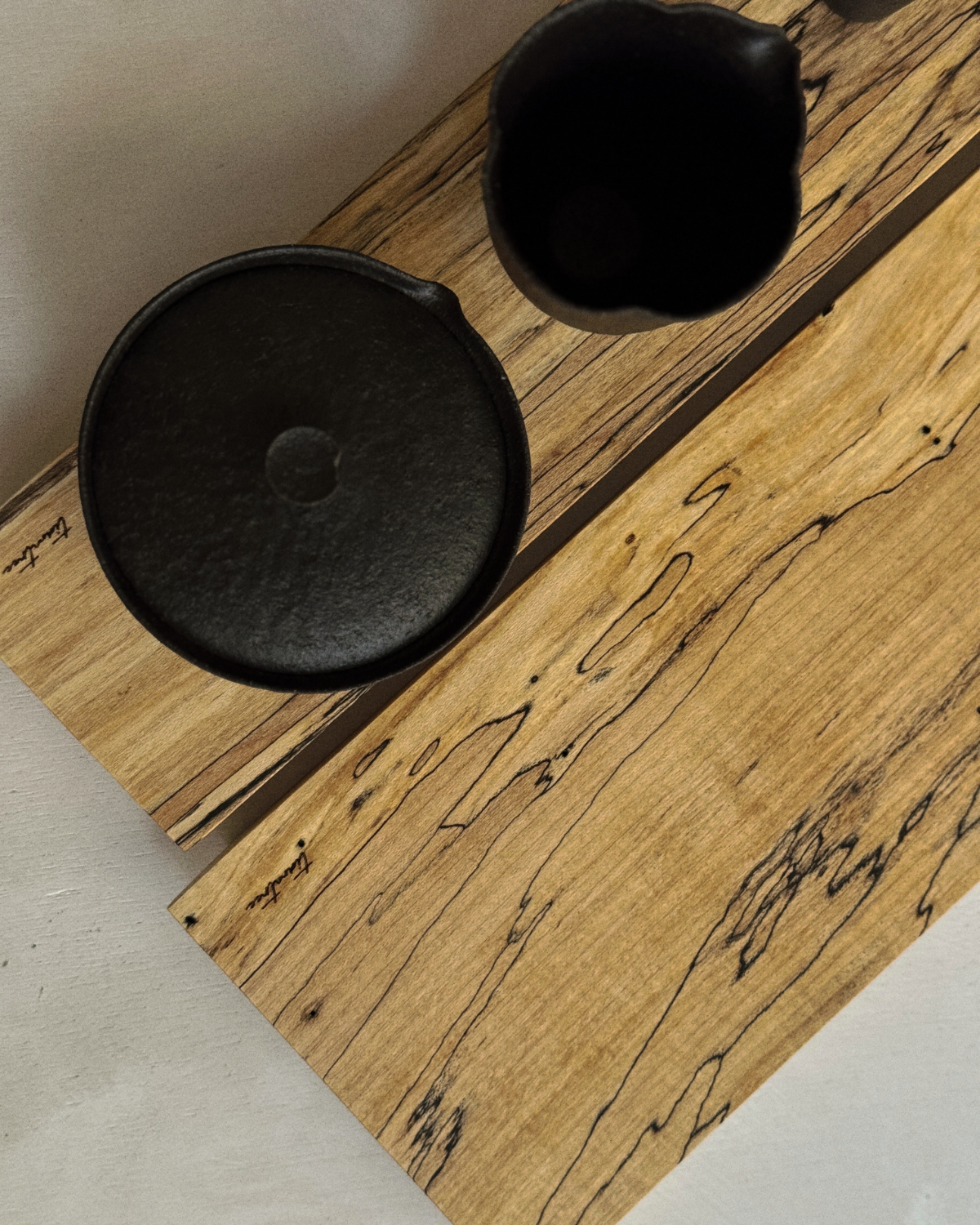 スポルテッドウッド特有の黒いラインが静かに浮かび上がるプレート。