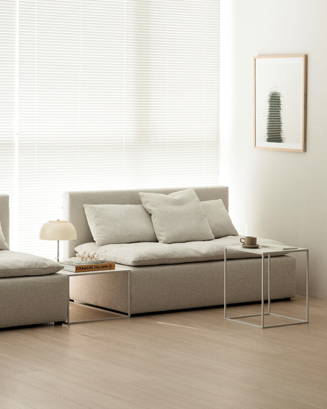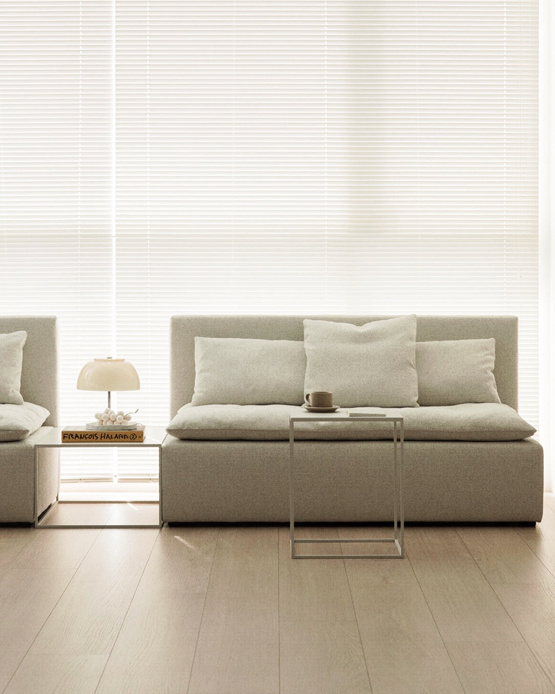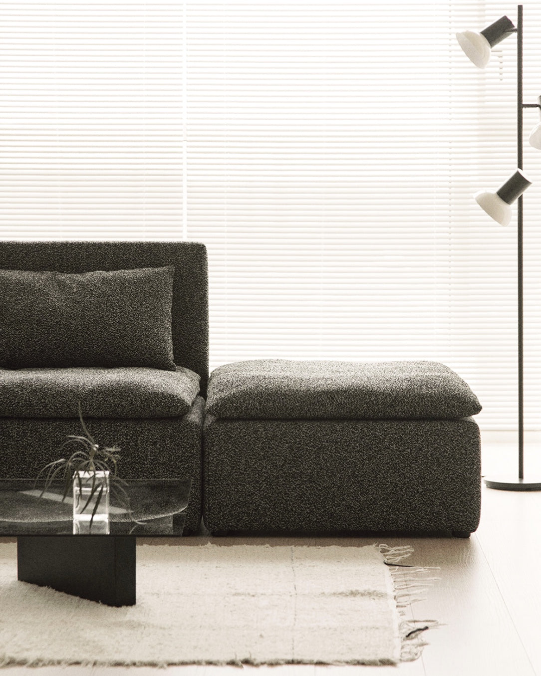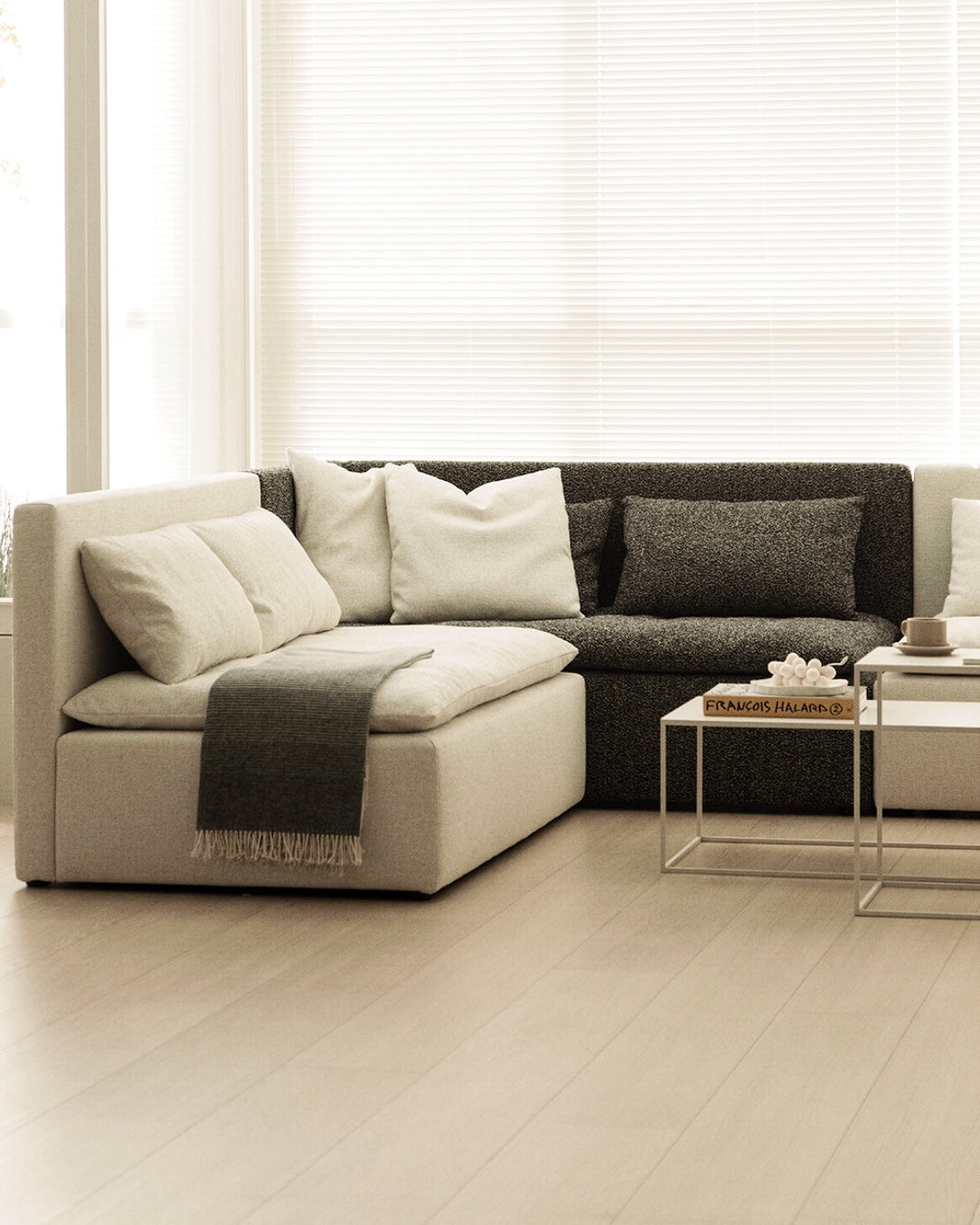 モジュールとモジュールの間の座布団クッションには空きスペースがあります。 また、ラテックスブロックとファイバー製なので、自然なシワと高さの差が生じます。これは柔らかいグースタイプの座布団を持つ製品の特性で、返品交換、払い戻しは致しかねます。